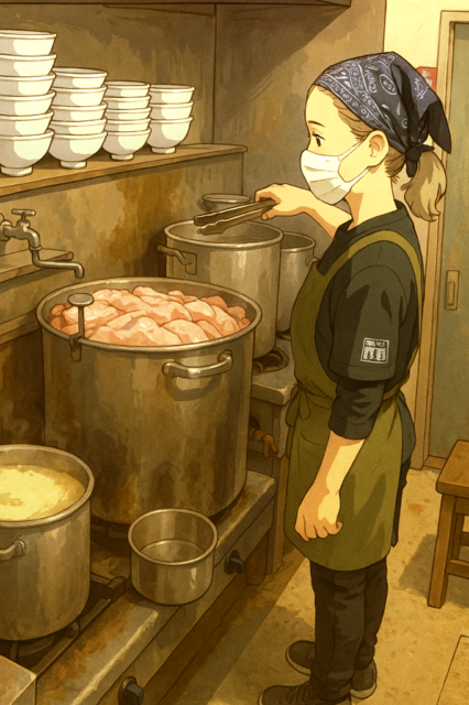 さて、製麺師舞妓氏が、寸胴前で調製しているのは珍しい光景です(爆)
