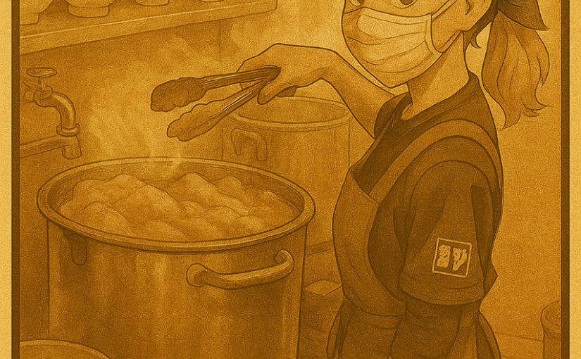 さて、製麺師舞妓氏が、寸胴前で調製しているのは珍しい光景です(爆)