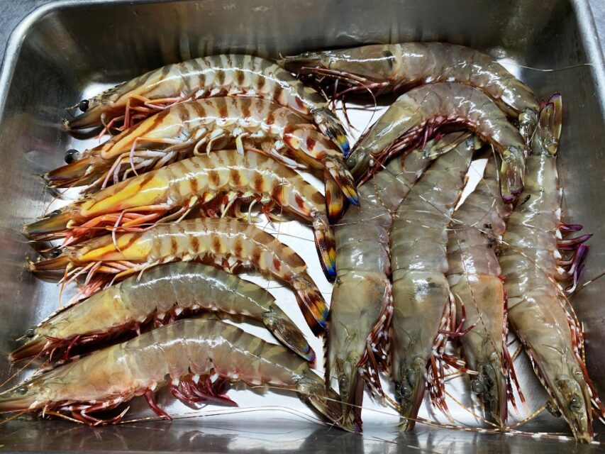 左上4尾がダン吉海老で、他の8尾がプーさん海老です。