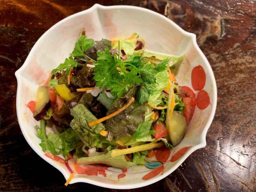 一気にオーダーしましたが、野菜サラダが先頭で出て来ました。