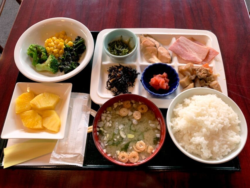 そして、翌朝は私一人ならば、紅鮭のおにぎり率100%なのですが、おかんが一緒なので朝食を付ける事にしました。